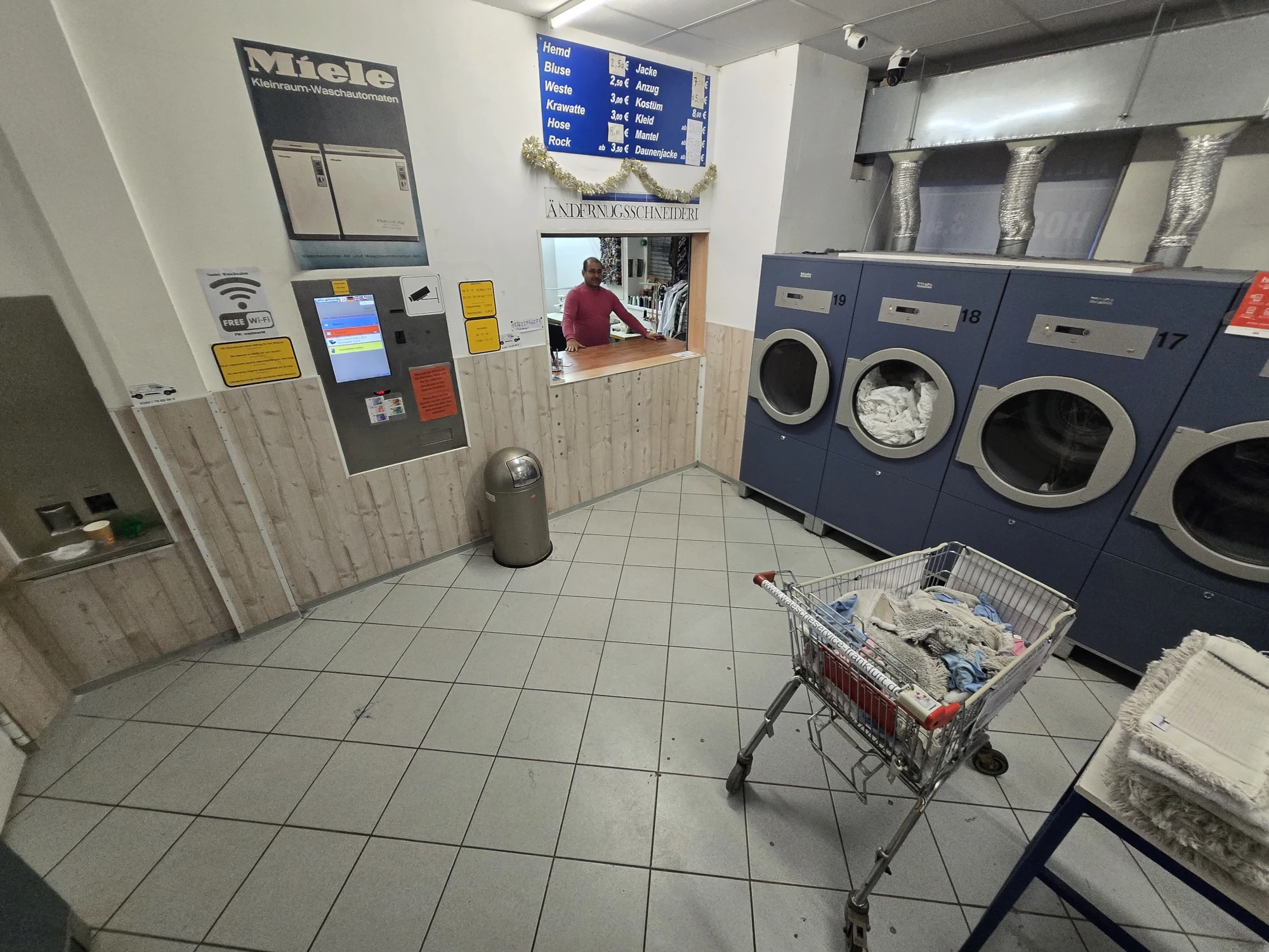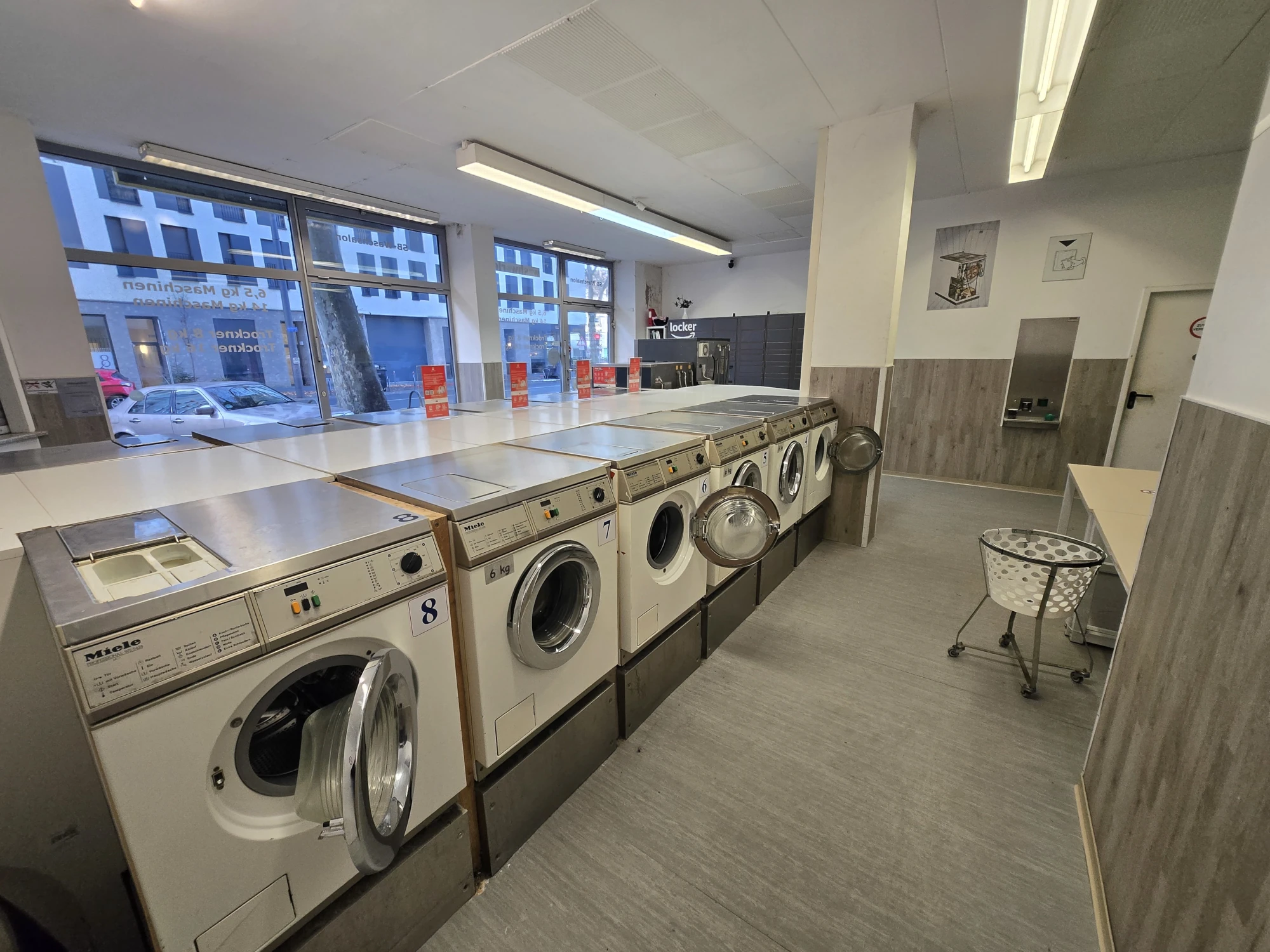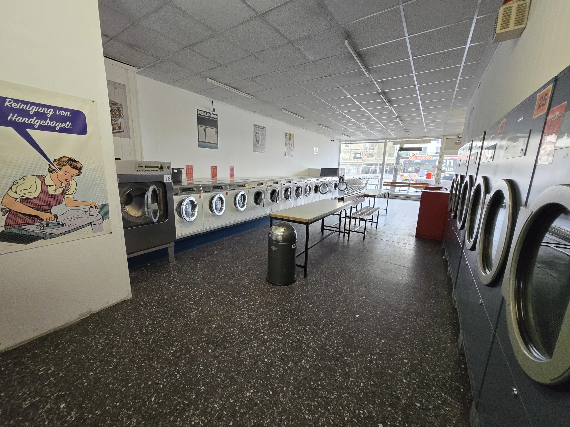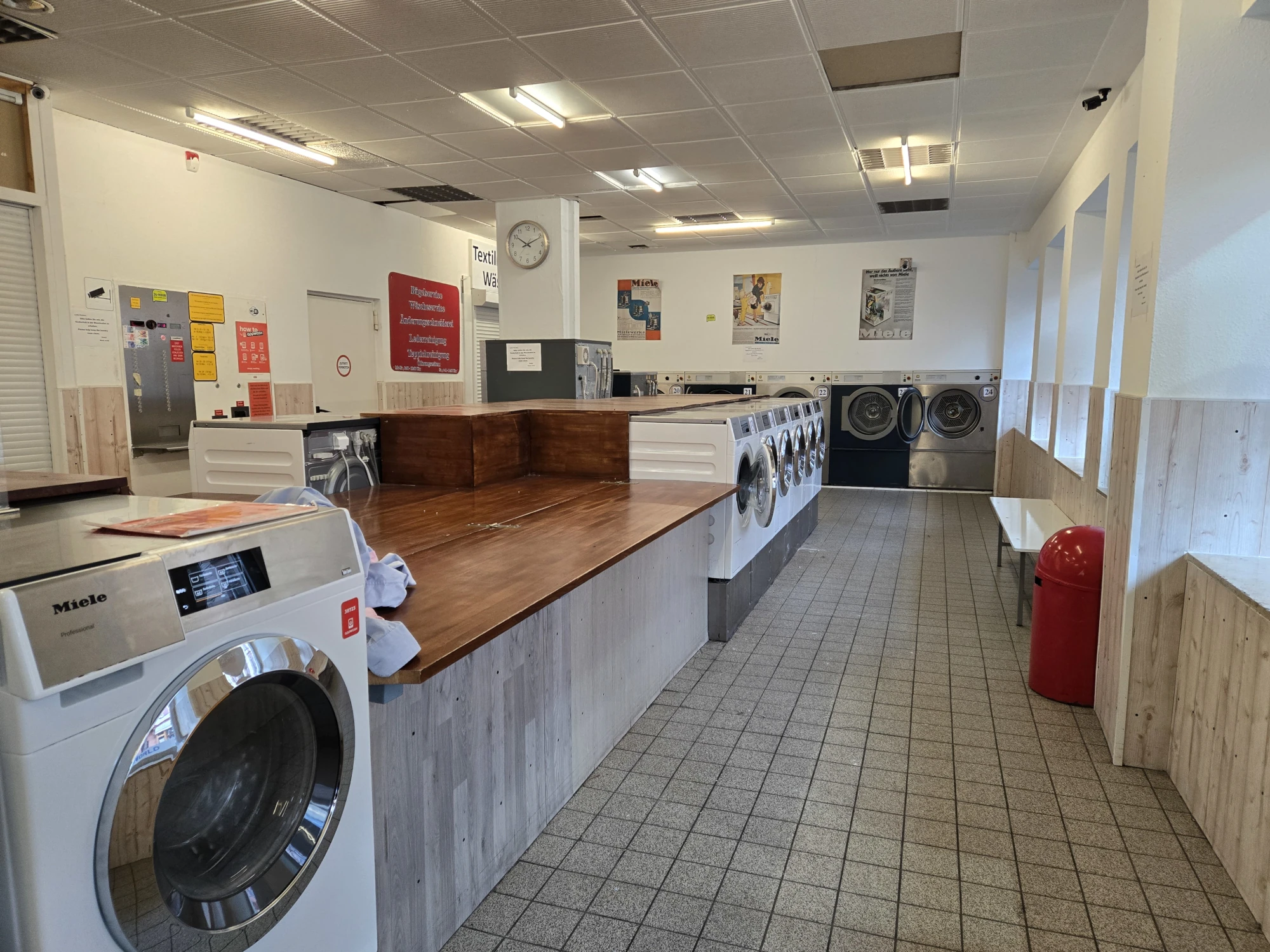Keine Waschmaschine? Kein Kohle? Du magst aber trotzdem saubere Wäsche? Dann komm in einen unserer 5 SB-Waschsalons in Frankfurt am Main vorbei. Zu den Öffnungszeiten Montag bis Samstag von 6:00 bis 23:00 Uhr kannst du so viel Wäsche waschen wie dein Herz begehrt. Günstig und in richtig guten Miele-Waschmaschinen. Trockner und Bügelstation gibt es natürlich auch. Ideal für Student:innen, Reisende, oder wenn du gerade mitten im Umzug steckst.