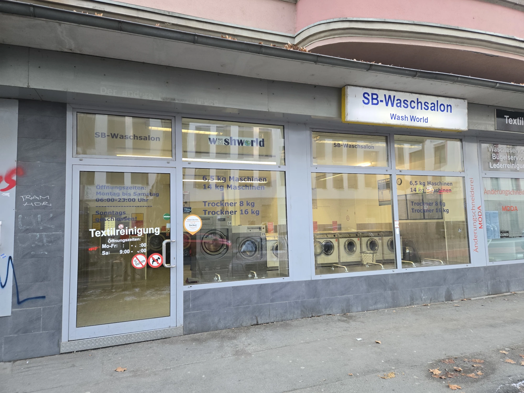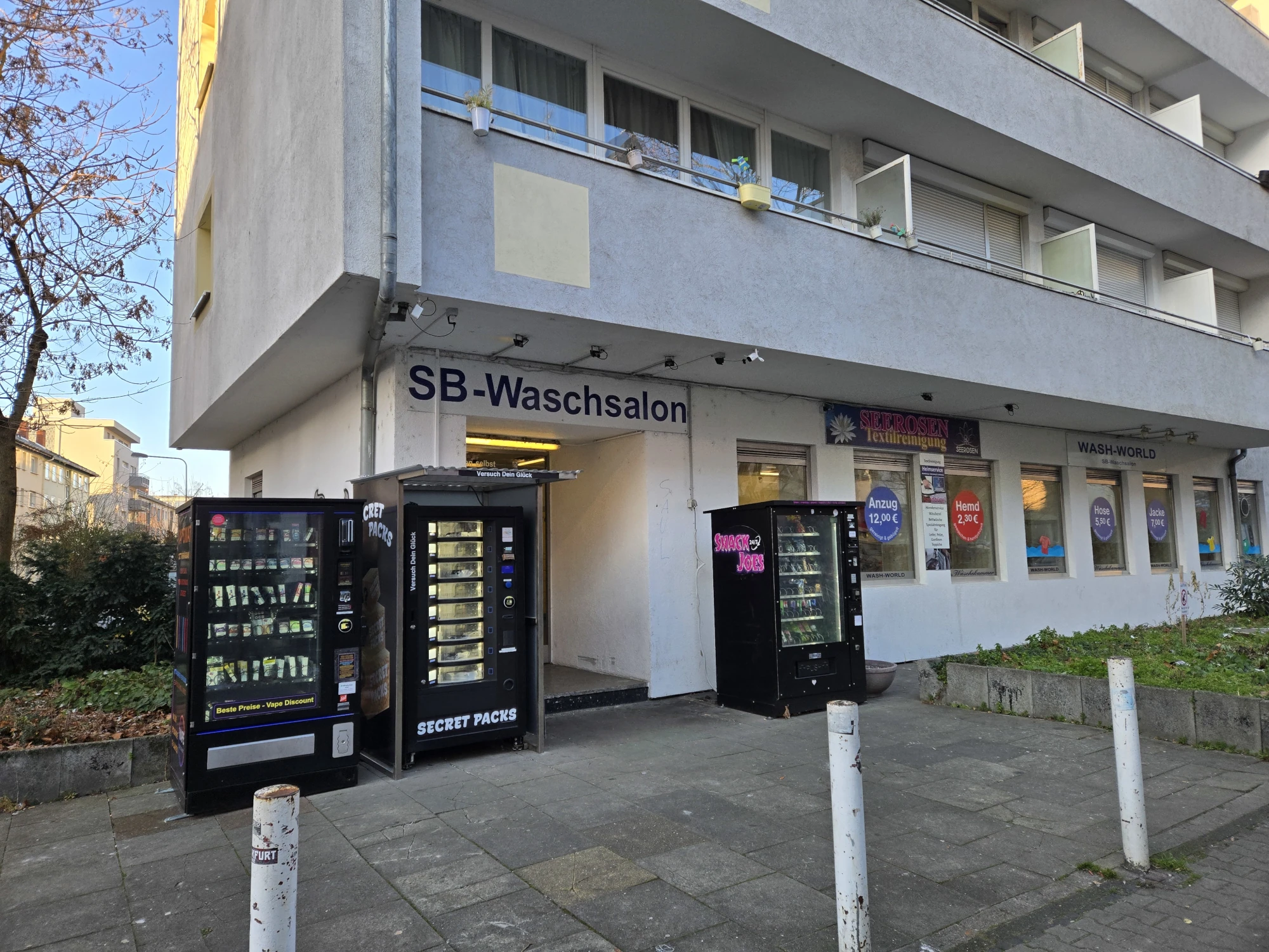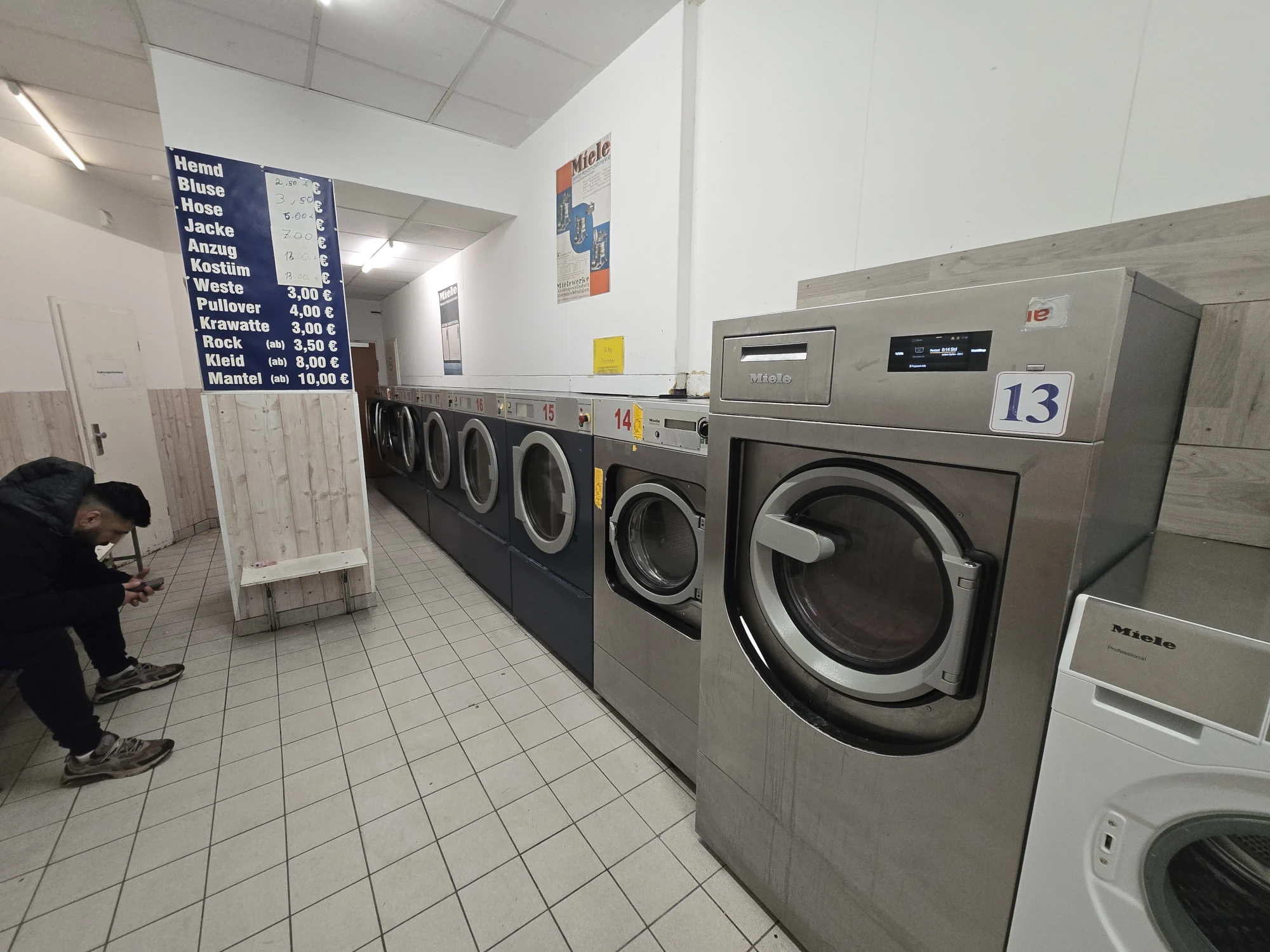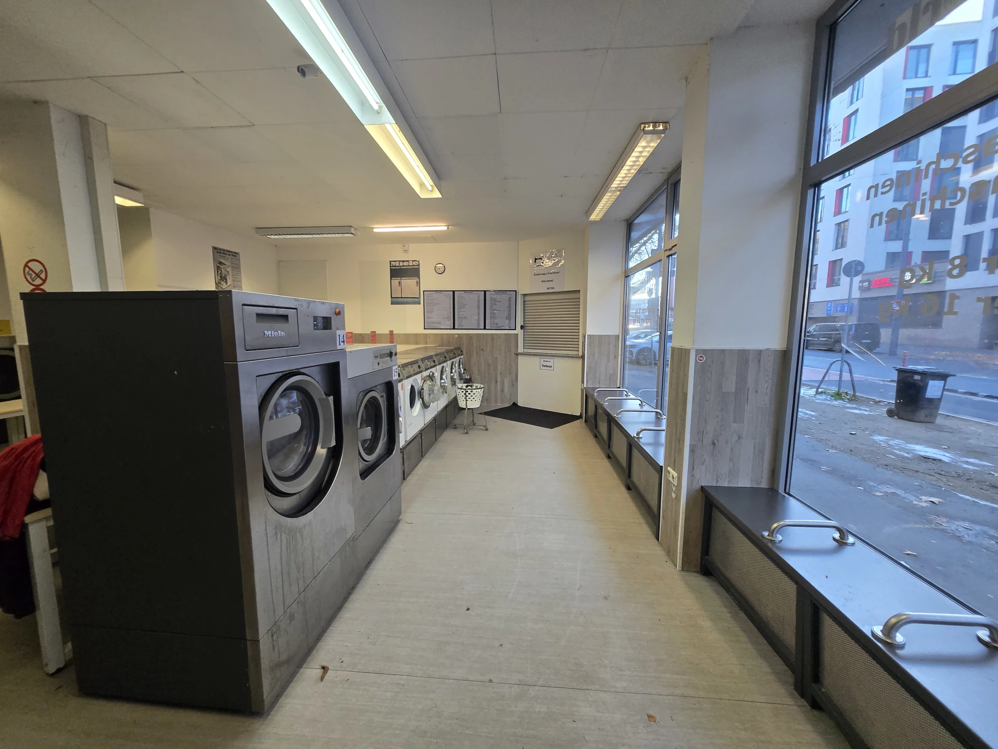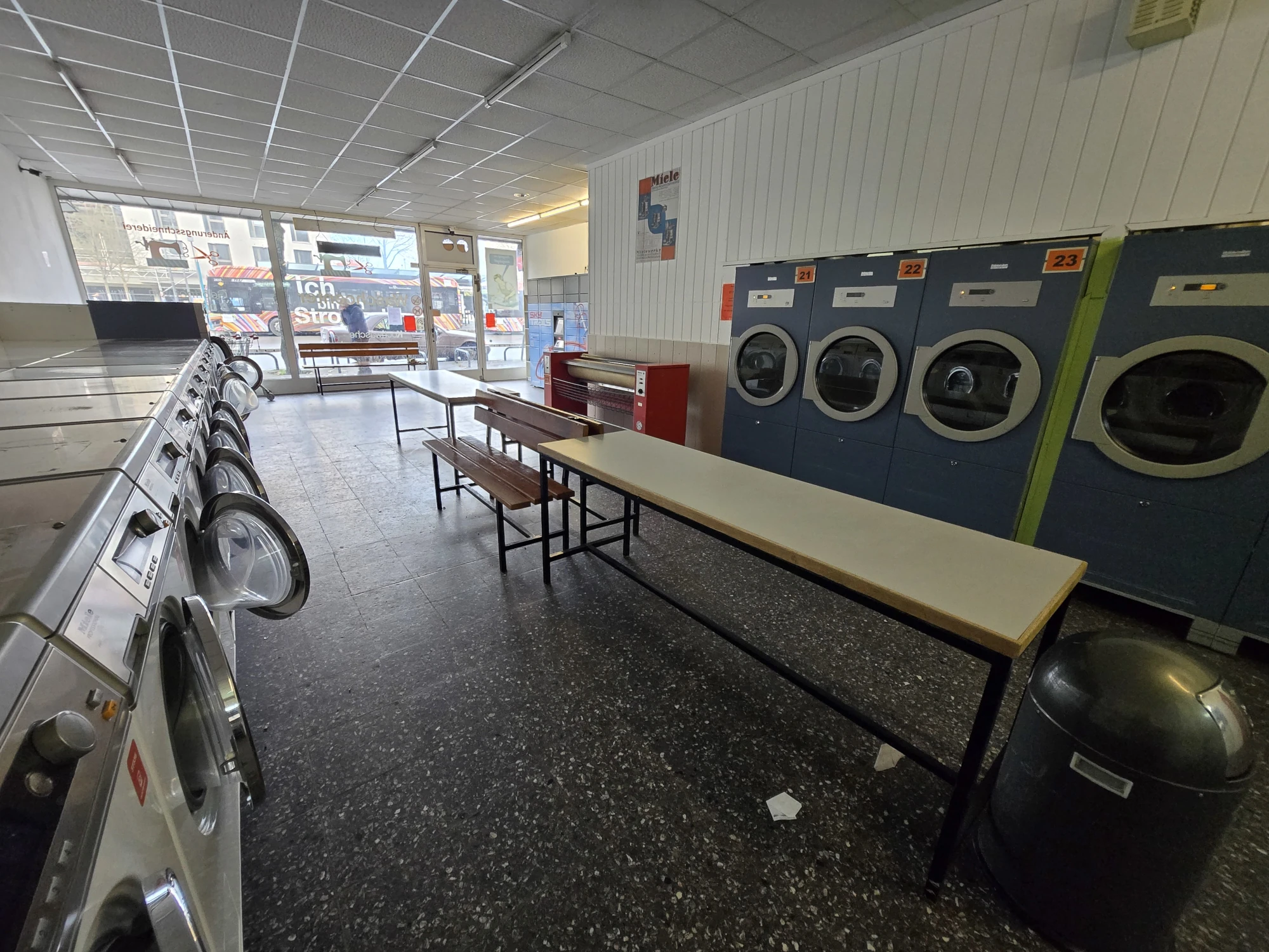 Keine Waschmaschine? Kein Kohle? Du magst aber trotzdem saubere Wäsche? Dann komm in einen unserer 5 SB-Waschsalons in Frankfurt am Main vorbei. Zu den Öffnungszeiten Montag bis Samstag von 6:00 bis 23:00 Uhr kannst du so viel Wäsche waschen wie dein Herz begehrt. Günstig und in richtig guten Miele-Waschmaschinen. Trockner und Bügelstation gibt es natürlich auch. Ideal für Student:innen, Reisende, oder wenn du gerade mitten im Umzug steckst.