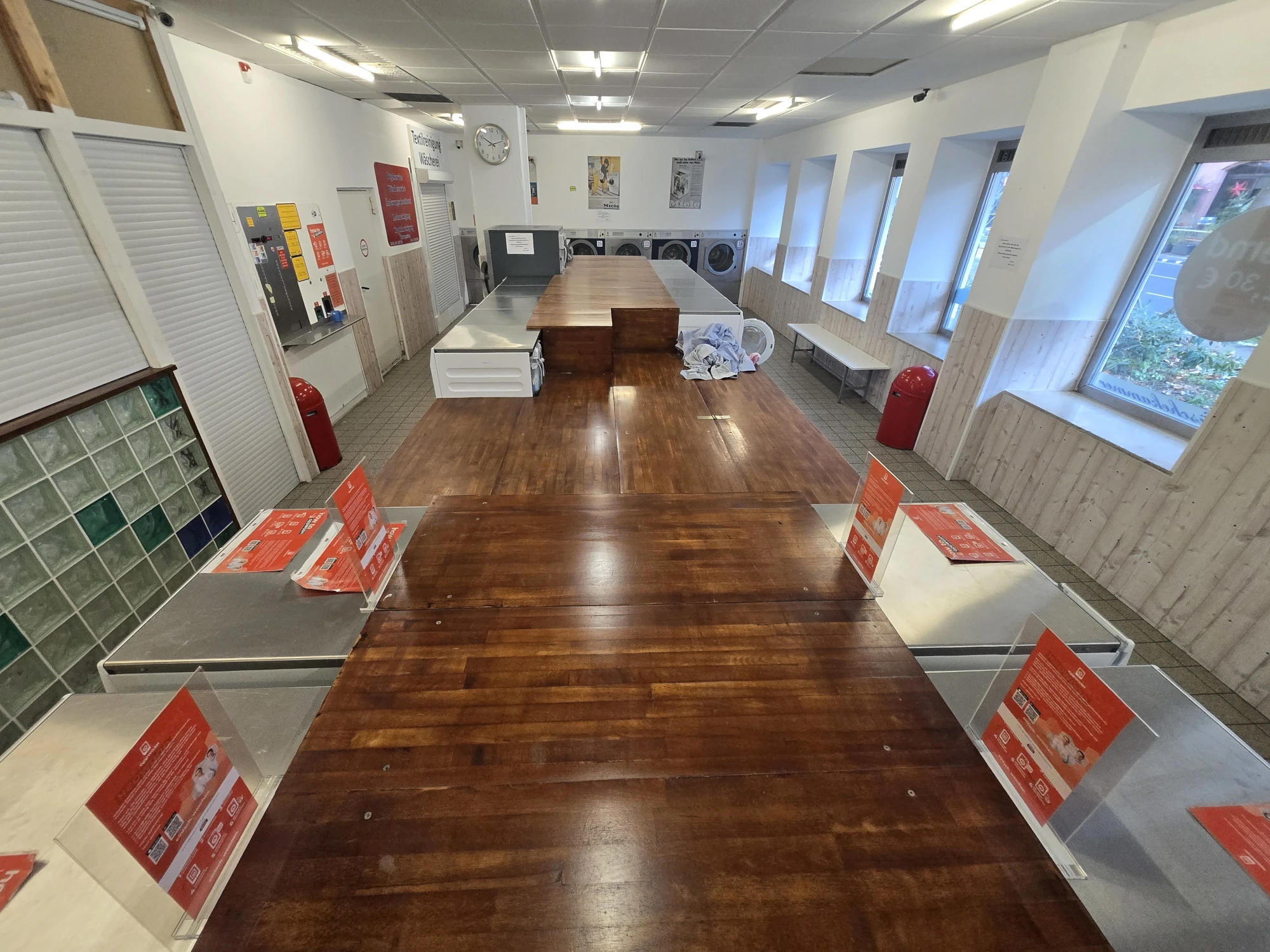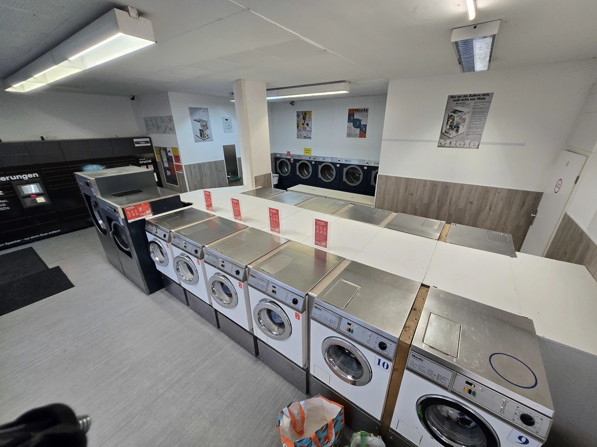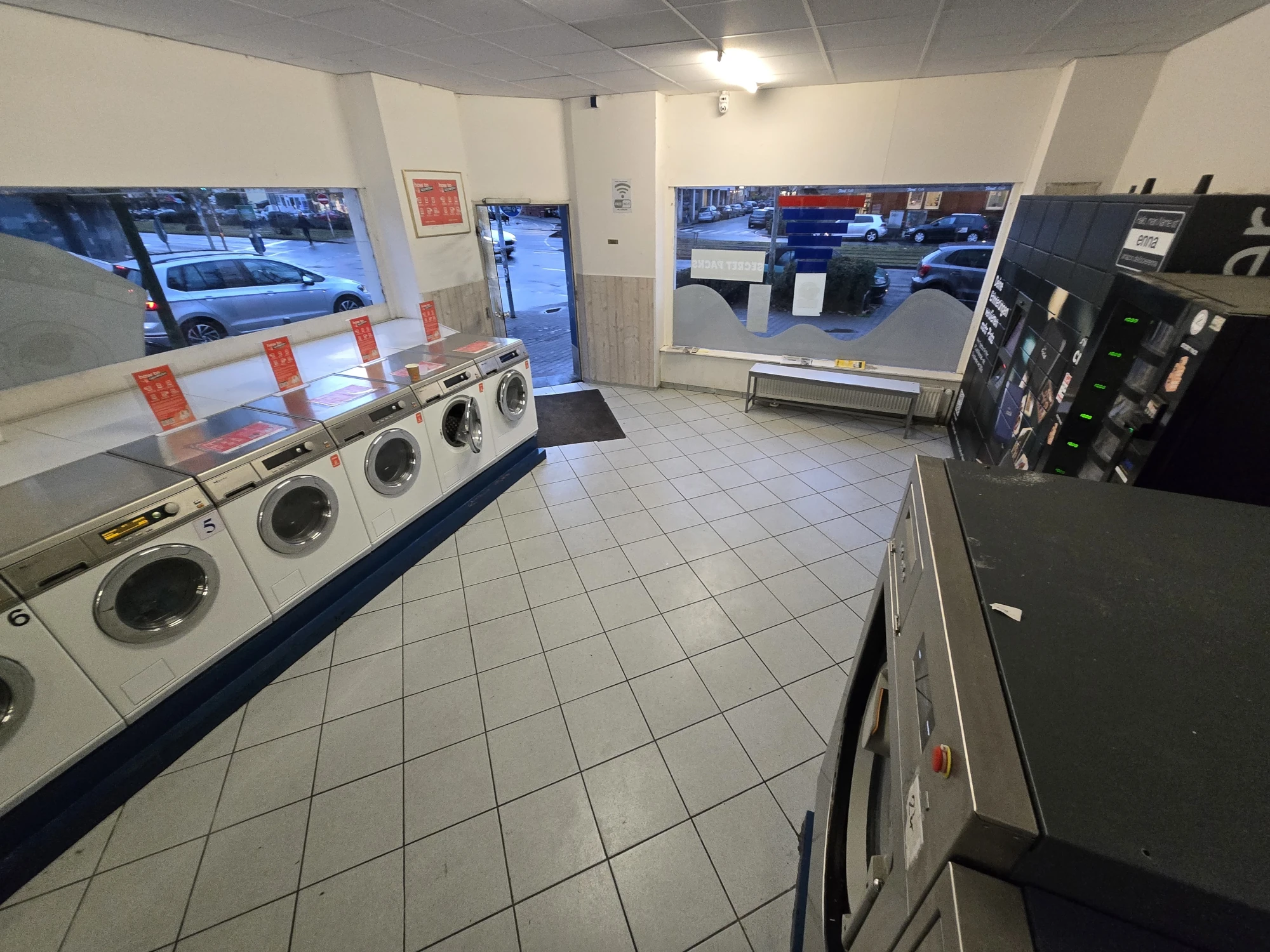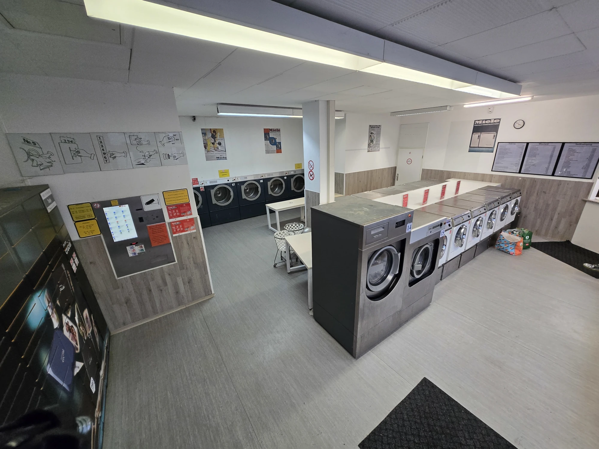 Und damit es dir nicht langweilig wird, gibt es eine Leseecke mit offenem Bücherschrank, Snack-Automaten und genug Sitzplätze. Unsere Mitarbeiter sind natürlich auch gerne für ein Pläuschchen da, wenn sie nicht gerade anderen Kunden helfen. Oder sie übernehmen das Bügeln für dich. Teamwork makes the dream work!
